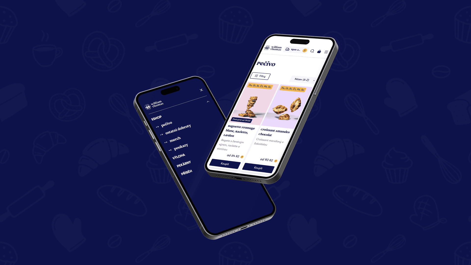 Původní e-commerce web William & Thomas Bakery funkčně naplňoval základní potřeby značky, nicméně z pohledu uživatelského zážitku zde byl prostor pro výrazné zlepšení. Hlavní navigace a hamburger menu obsahovaly položky, které bylo možné lépe pojmenovat a logičtěji uspořádat. Některé důležité funkce typické pro moderní e-commerce, jako například vyhledávání produktů nebo filtrování dostupnosti zboží, buď chyběly, nebo jejich implementace nebyla dostatečně uživatelsky přívětivá.
